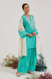 Aqua Green Zari Kurta with Farsi Salwar - Set of 2
