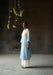 • Ivory Blue Ombre silk chanderi front pleated Kurta with slit on the sides