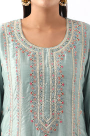 Ice Blue Embroidered A-Line Kurta & Dhoti Set