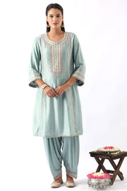 Ice Blue Embroidered A-Line Kurta & Salwar Set