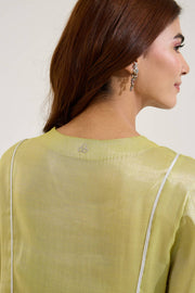 Lime Floral Zari Tissue Anarkali with Narrow Pants is a masterpiece of design and craftsmanship. Its pastel palette, flowing silhouette, and luxurious details make it a must-have for any wardrobe, ensuring you dazzle at every event. -This Set contains 2 pieces - Kurta and Pant. -Made from premium tissue fabric and have structured fit, ensuring it drapes effortlessly. -Crafted from soft, complementary fabric in a tailored slim fit, these narrow pants balance the voluminous Anarkali with a modern touch.