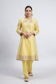 Naazira- Daffodil Yellow Tilla Embroidered Kurta Set