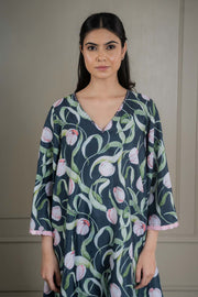 Navy-blue Printed Co-ord Set With Sequin Detailing (Set Of 2)