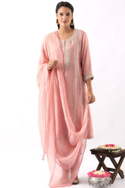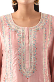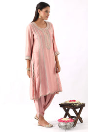 Pink Embroidered A-Line Kurta & Dhoti Set