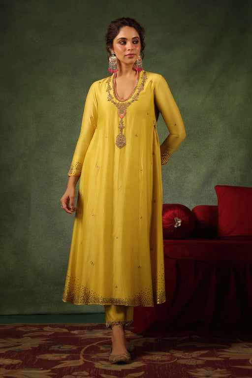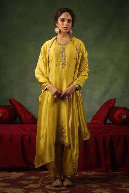 Lemon yellow kurta set with beautiful lace detail and pants. Highlights Elevate your style with our Lemon Yellow Kurta Set from...