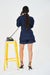 The Nova Denim Co-ord, Crafted from premium dark-wash denim with contrast white stitching, the set features a tailored jacket with front flap pockets, a defined waistline, and a zip-up front that adds a modern edge. Paired with matching high-waisted shorts, the co-ord brings together effortless polish and casual confidence — perfect for transitional dressing or statement off-duty looks.