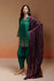 Emerald Silk Kurta Set with Golden Embroidery and Contrasting Purple Dupatta