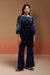 This set is made in plush velvet for comfort and ease. The short kurta is printed with paisley motifs, blended with floral and geometric elements. It is paired with straight pants for a simple yet refined winter look.