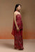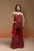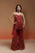 The Reha Set features a wine short kurta with abstract floral print, elevated with delicate hand embellishments. It is paired with striped golden jacquard sharara pants, finished with a placement print at the hem. A habutai silk choker-style dupatta with fine hand embroidery at the neckline completes this elegant festive look.