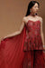 Wine Printed Kurta Set with Jacquard Sharara and Choker Dupatta