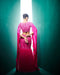 Description: This Fuchsia pink netted mermaid lehenga has heavy cutdana & sequence work on the bottom and paired with heavy cutdana & sequence work boatneck neck blouse with attached ruffle dupatta.