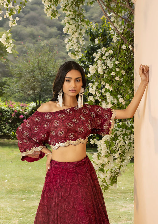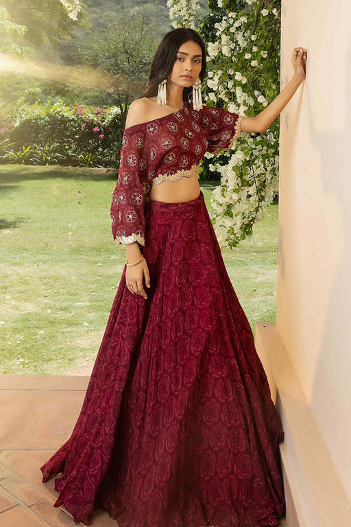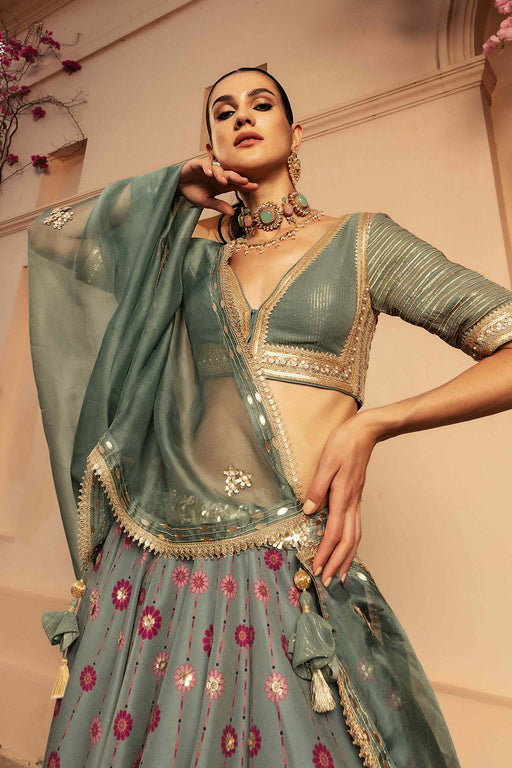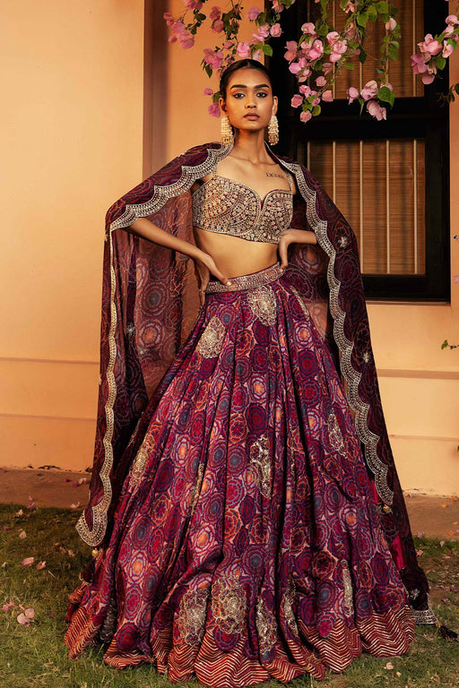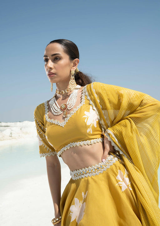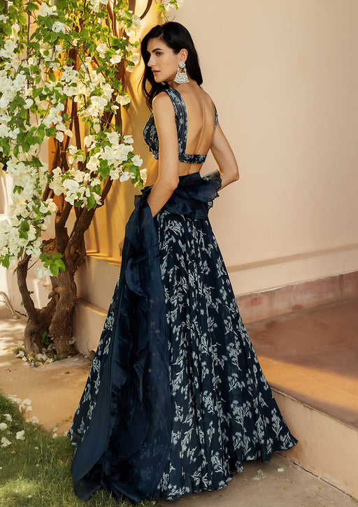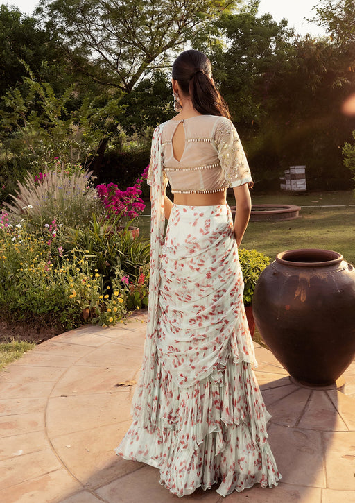 Featuring Here a off white printed lehenga. This set has an embroidered blouse and dupatta
