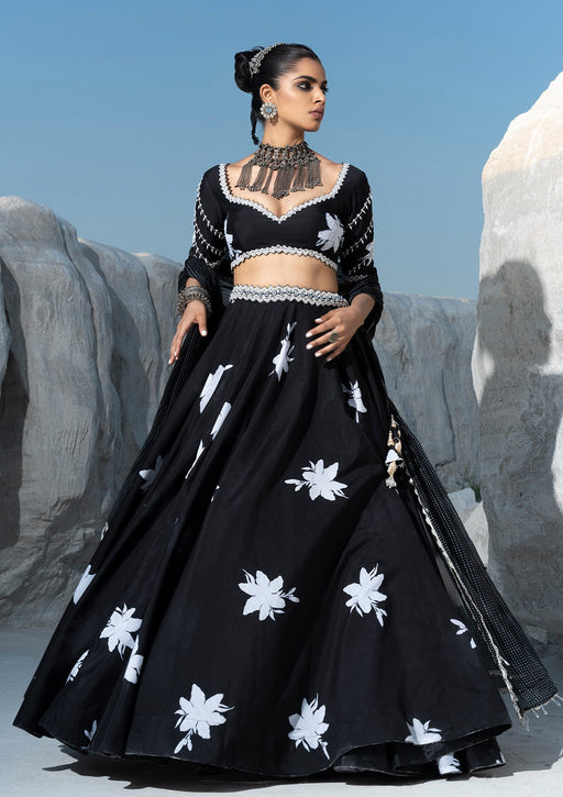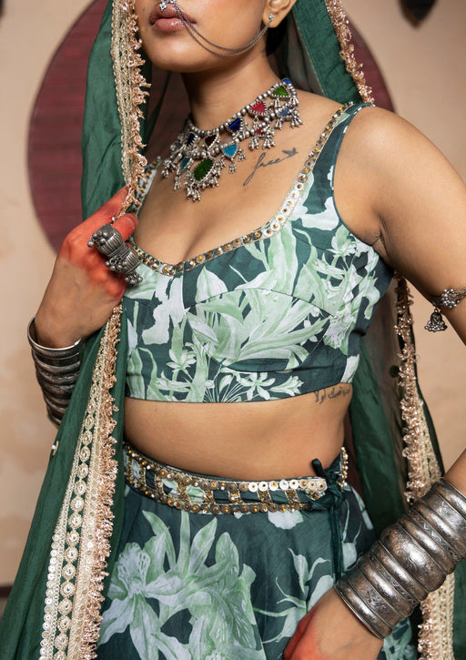 Featuring a Bottle Green Floral Lehenga Set in Silk.