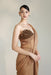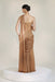 A sultry twist on classic elegance, this golden-brown corset saree is crafted to turn heads. The corset features embroidered chest cups with a sheer, transparent torso for a bold yet refined appeal. From below the bust flows a sculpted & corset is attached to the skirt with front pleats making a saree fit with attached palla — a modern masterpiece balancing allure and sophistication.