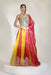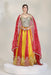An opulent play of mirrors, light, and movement. The corset is intricately hand-embroidered with glass mirrors, zari, and fine detailing, creating a luminous effect with every angle. Paired with an organza skirt in alternating pink and yellow kalis, finished with mirror and gota work at the bottom ghera. Paired with a pink beautiful organza dupatta embroidered with gota and a beautiful border on all edges. This ensemble celebrates artisanal craft with a modern edge.
