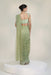 Drape yourself in sheer brilliance. This exquisite SAGE GREEN net saree is a masterpiece of hand-embroidery, shimmering with an intricate medley of different types of sequins. Each stitch reflects unparalleled craftsmanship, promising to make you sparkle with every movement.