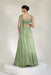 Commanding yet fluid, sage green ensemble is crafted for the modern muse. The hand-embroidered blouse, cinched to perfection, comes with an attached drape that adds effortless movement. Paired with a richly detailed lehenga skirt, every shimmer of threadwork and sequin reflects power, poise, and celebration.