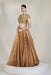 An elegant reinterpretation of festive classics. This set features a plain skirt highlighted with a delicately hand-embroidered belt, paired with a fully hand-embroidered blouse showcasing zari and 3D sequins. The look is completed with an applique-embroidered dupatta neckline, draping gracefully like a jewel.