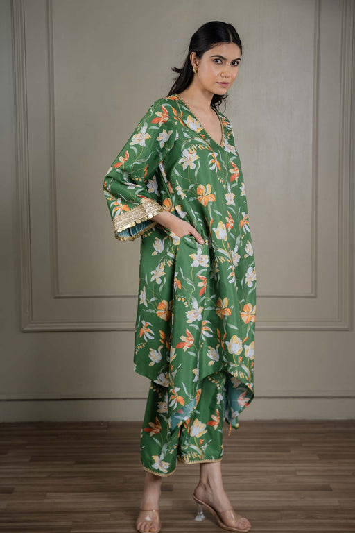 View full detailsFabrics. - Top- Mul Chanderi. - Bottom- Cotton Satin. - Dupatta- Chanderi Jacquard. Product Description. - This set i...