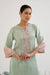 Mint Lotus Applique Tissue Kurta with Narrow Pants is a sophisticated and contemporary ensemble that blends luxurious fabric textures with intricate detailing. Adorned with delicate Machine embroidery and sequins, this outfit offers a graceful yet festive look, perfect for weddings, receptions, or celebratory occasions. -This Set contains 2 pieces - Kurta and Pant. -Kurta on Tissue is adorned with Applique work on neck. -Paired with Straight Leg Pants. -Combines cultural charm with modern style for versatile wear -The fine weave, luxurious fabric ensures all-day comfort.