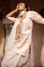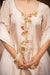 Graceful and timeless, this warm ivory ensemble is crafted from lustrous Upada silk, exuding understated elegance. The kurta features delicate hand embroidery along the neckline and front — meticulously adorned with pearls and kadna that add subtle texture and shimmer. Paired with a flowing farshi salwar in matching silk and a sheer organza dupatta edged with hand-embellished detailing on the hem, the set creates a regal silhouette with a modern softness.