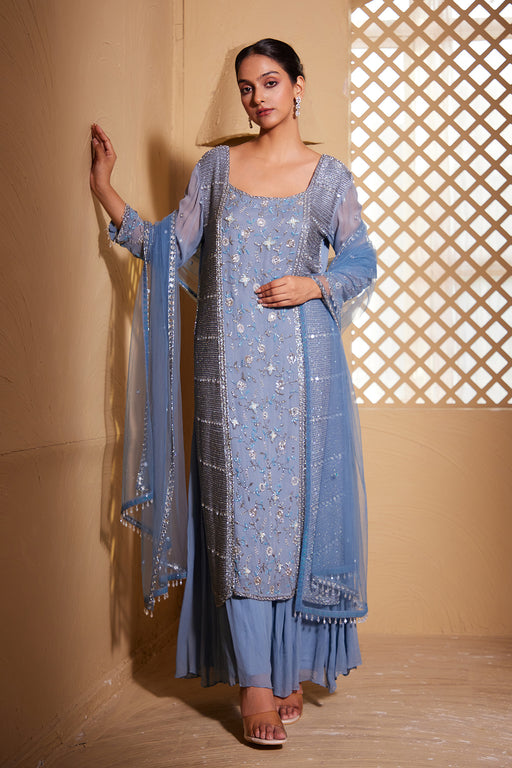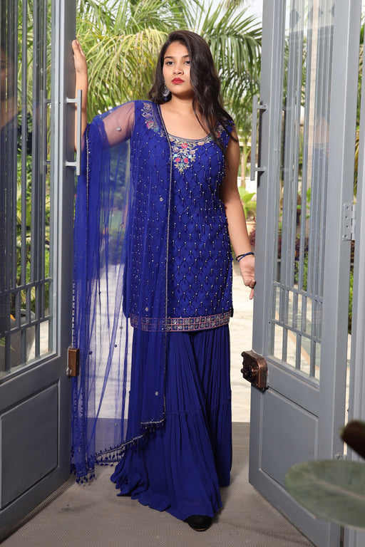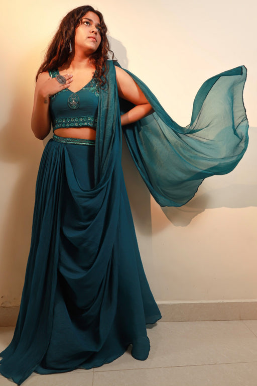 Inspired by Deep Blue Ocean with Cutdana and Mirror Work