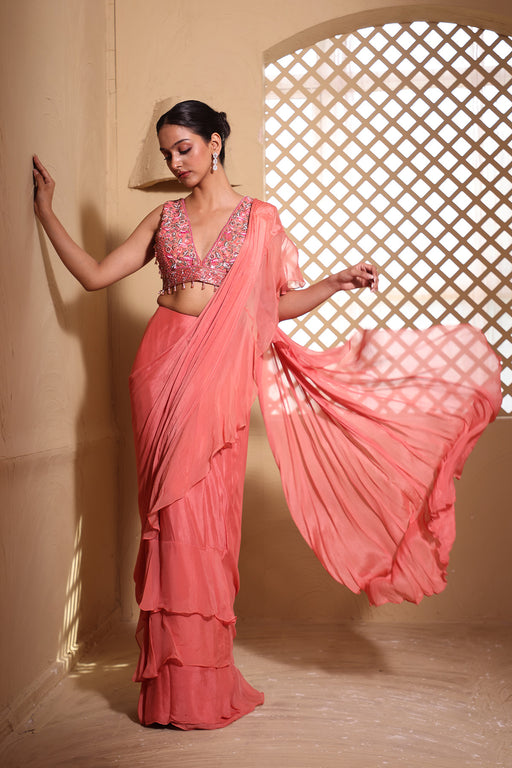 Pre Draped Ruffle Saree
