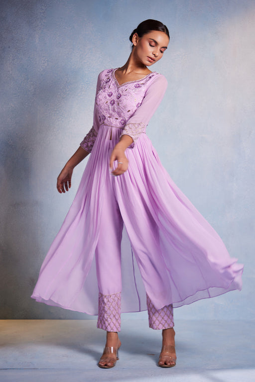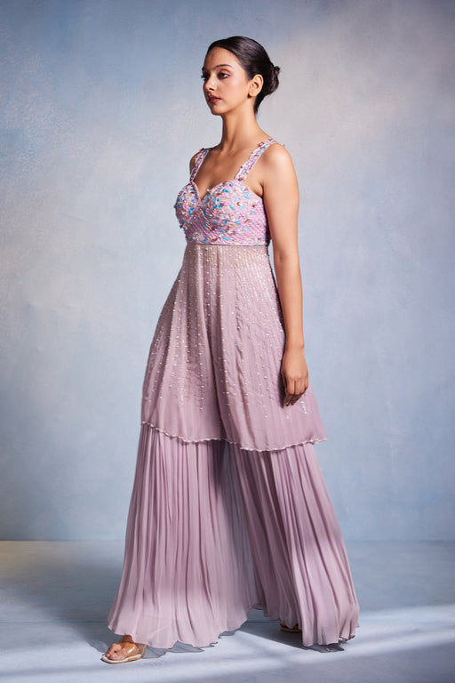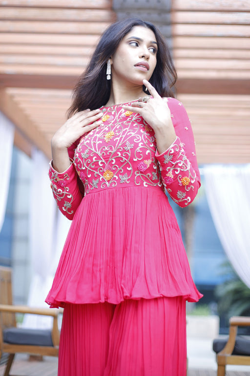 Purely handembroiderd peplum top with gathered gharara