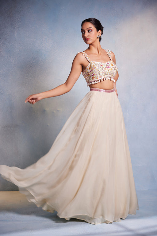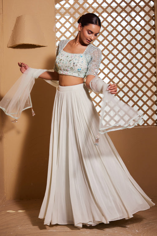 Purelyhandembroidered Cutwork Sleeves and Hem Choli