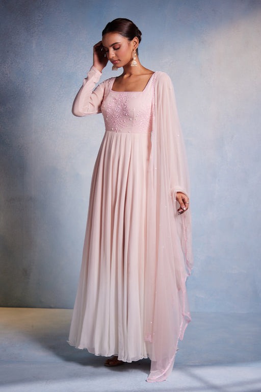 View full detailsOmbre Shaded Anarkali with Beautifully Handcrafted Embroidery and Tassels at The Back