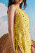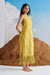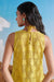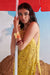 The Khatta Meetha Ber Overlay in citrus yellow features palm tree embroidery with brown beads, side-ties for an adjustable fit, and fringed hem detailing. A playful, chic layer, it elevates any outfit making you look like the sun while you look at the sun.