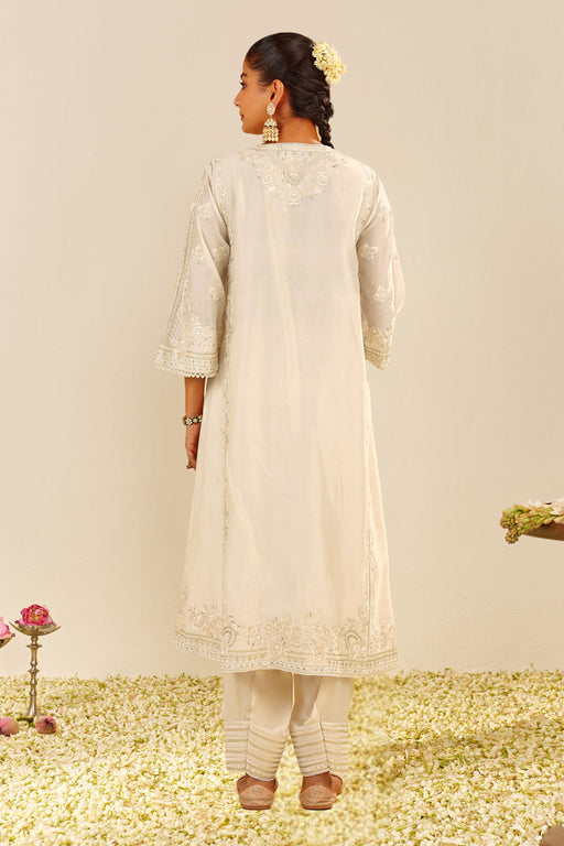 View full detailsFabric : Kora silk, Organza Lining Details : Cotton lining Color : Toasty Grey Embroiderary Details : Hand cut work No. Of Components : 3 Wash Car...