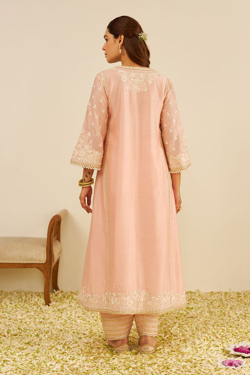 View full detailsFabric : Kora silk, Gold stripe tissue Lining Details : Cotton lining Color : Barbie Pink, Gold Stripe Embroiderary Details : Delicate Zardozi and...