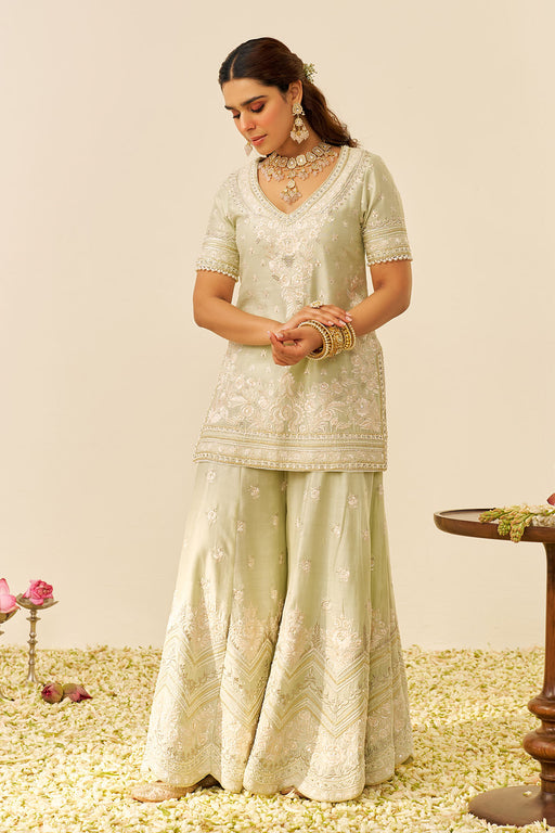 View full detailsFabric : Tissue No. of components : 3 Pack Contains : KURTA-1Nos, Trousers- 1Nos & Dupatta Color : Green Wash Care:Preferably Dry Clean Only |...