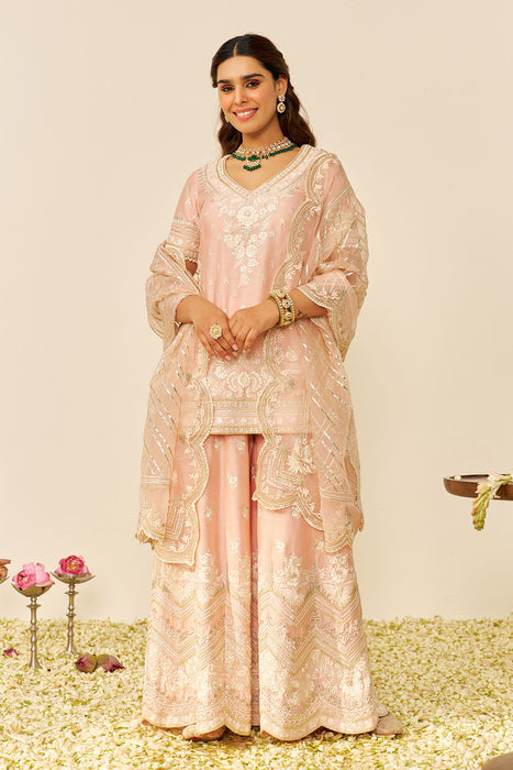 Sameeha - Short Kurta With Sharara (Off Rose)
