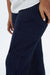 The Cold Cut Trousers are made in a navy pinstripe feature a high waisted straight-leg fit, refined cargo pockets, and a front zip with a hook and bar closure.