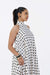 Our Bias-Cut Polka Halter Dress offers a fluid, full-length silhouette crafted for effortless movement. Cut on the bias for a naturally draped, body-skimming fit, it features a chic halter neckline and a dramatic flared hem—perfectly blending elegance with playful sophistication.