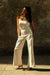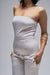 Our Ivory Strapless Jumpsuit is the epitome of understated luxury. Crafted from opulent duchess satin, this sleek one-piece features a sculpted strapless bodice that flatters the silhouette, while discreet pockets add both function and ease. The flared hemline brings graceful movement, creating a refined yet statement-worthy look. A timeless piece designed for versatility.