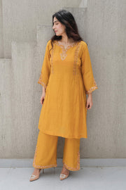 Mustard Chanderi Kurta Set
