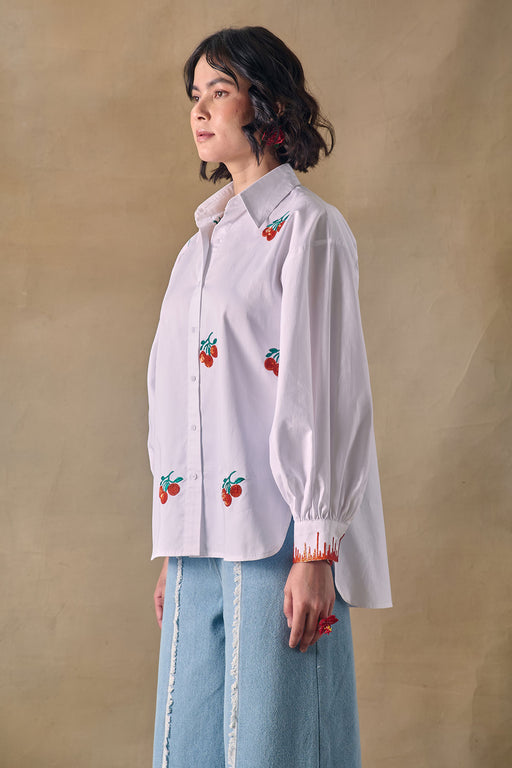 View full detailsAsilah white button down shirt with full sleeves, beadwork embroidery on front panels and embellished cuffs. Fabric- Cotton Satin Colour- White Sur...