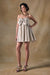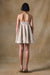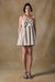 Fold foil fit and flare mini dress with noodle straps, sweatheart neckline and a charming bow tie detail at the bust.