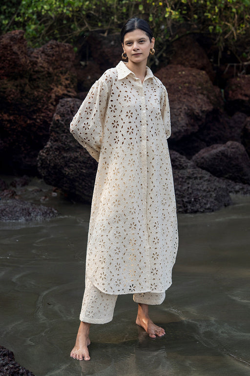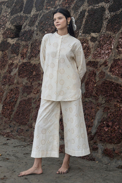 Tori embroidered coord set is made from our hakoba embroidered fabric. It is a short kurta which is paired with a cullotte pants.Material: Hakoba e...