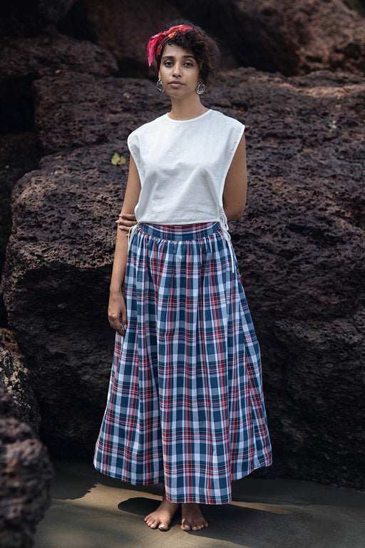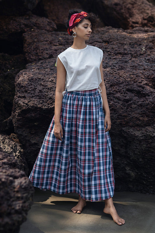 Wrap skirt is made from our madras checks fabrication. It is a wrapped skirt which can be styled in multiple ways.Material: Madras ChecksColour: Bl...