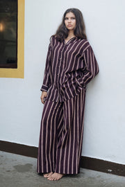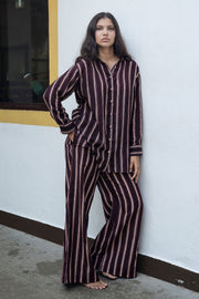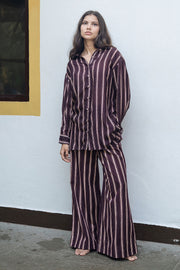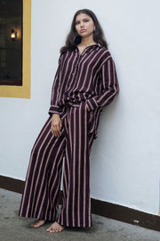 Maria shirt is made from our cotton silk fabrication in hand painted striped print. It is a anti fit button down shirt which can be paired with any bottom, shorts or skirts.