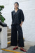 Missu coord set is made from our yarn dyed linen cotton fabrication. The top is a short sophisticated V neck blouse with a delicate sleeve detailing paired with straight pants.