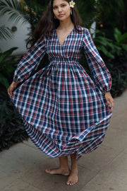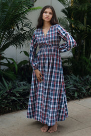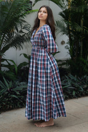The Roosh dress is made from our madras checks fabrication. It has smocking detailing on the upper body with gathers under the bust to give a good shape.