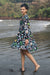 The savi dress is made from our cotton chequard slub fabric with hand painted embroidered floral print. The upper part of the dress is made through smocking detailing.