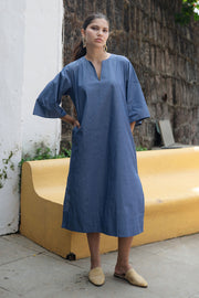 The Soriee dress is made from cotton chambray fabrication. It is a relaxed box fit dress with slits making it perfect for a summer afternoon.
