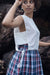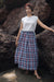 Wrap skirt set is made from our madras checks fabrication. It has a bib top in linen cotton fabric and paired with a wrap skirt.