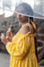 The zoe dress is made from our cotton chequard fabrication in our hand painted floral print. It has a tie up detailing at the shoulder with dropped sleeves and fagotting detailing under the bust.